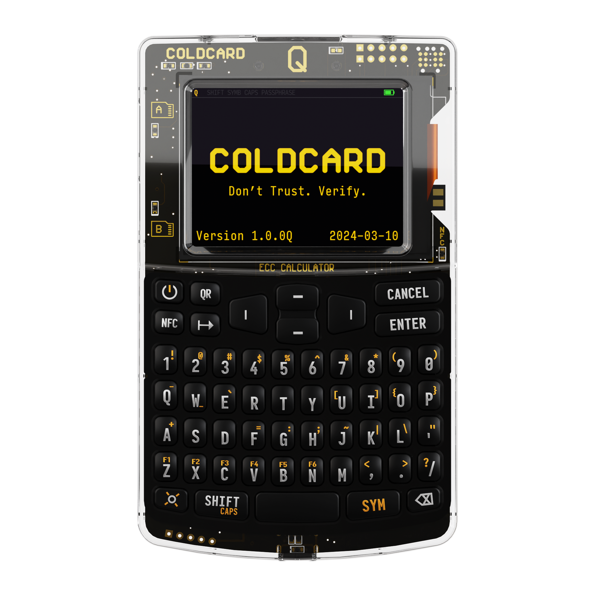 The COLDCARD® Q is the higher-end COLDCARD you've always dreamed about. It has a full QWERTY keyboard, a larger LCD screen that's easy to read, a real QR scanner and much more! The Q uses exactly the same security model as the Mk4 COLDCARD, with dual multi-vendor secure elements.